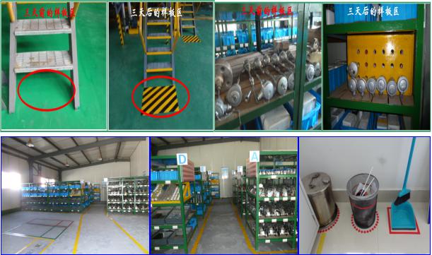 周一下午開始正式對(duì)選定的樣板區(qū)進(jìn)行打造,打造前也要求樣板區(qū)成員集中宣誓,6S管理樣板區(qū)的打造是要在不影響整體生產(chǎn)的情況下推進(jìn)。咨詢顧問在現(xiàn)場巡回輔導(dǎo),6S管理打造首先從識(shí)別不要物及處理不要物開始,在整理的時(shí)候,有部分老員工把個(gè)人近二十年的物品清理回去,通過現(xiàn)場各樣板區(qū)徹底的整理活動(dòng),周二起,顧問團(tuán)隊(duì)對(duì)樣板區(qū)作整頓的巡回輔導(dǎo),并提出共362件的改善建議,顧問團(tuán)隊(duì)對(duì)每個(gè)改善進(jìn)行了詳細(xì)的講解并提供參考的案例。經(jīng)過三天的6S管理打造活動(dòng),6個(gè)樣板區(qū)共完成了358件的改善亮點(diǎn),清理不要物2839件,約1.5噸,整理出空間面積約39平方米。本6S管理樣板區(qū)打造活動(dòng)圓滿結(jié)束,在報(bào)告會(huì)上由王總給優(yōu)秀樣板區(qū)進(jìn)行獎(jiǎng)勵(lì)鼓勵(lì)。