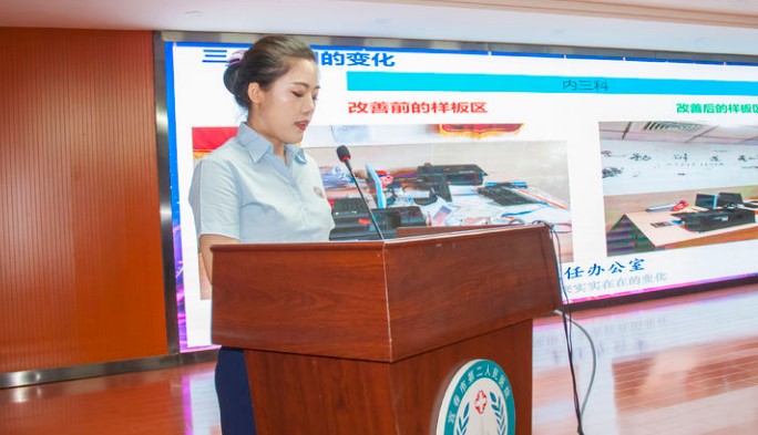李嬌娃代表內(nèi)三科匯報6S精益管理打造情況: