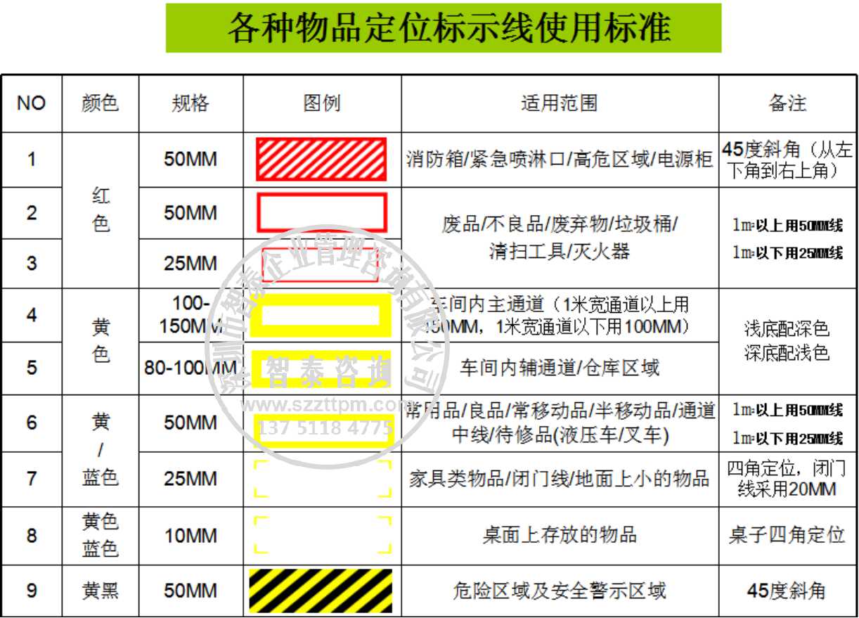 以上只是一小部分可視化管理標(biāo)準(zhǔn),需要完整版可視化標(biāo)準(zhǔn)手冊(cè)請(qǐng)與智泰咨詢聯(lián)系!