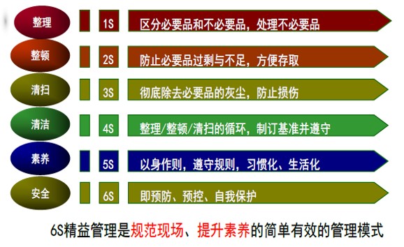 6S管理是哪6個(gè)S呢?今天跟大家解說一下,6S即整理(SEIRI)、整頓(SEITON)、清掃(SEISO)、清潔(SEIKETSU)、素養(yǎng)(SHITSUKE)、安全(SECURITY)