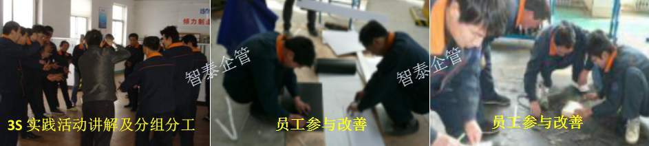本次活動(dòng)首先由智泰顧問老師給參加3S活動(dòng)的人員進(jìn)行6S培訓(xùn),培訓(xùn)結(jié)束后進(jìn)行分組分區(qū)域,然后來到區(qū)域內(nèi)進(jìn)行3S活動(dòng),員工們正在認(rèn)真的判定現(xiàn)場(chǎng)的不必要物品并開始清理,組員有的查找6S不合理,有的改善6S不合理,現(xiàn)場(chǎng)活動(dòng)結(jié)束后再整理分析不合理,擬定維持管理標(biāo)準(zhǔn)。